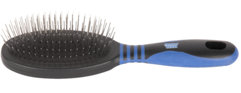 De vacht 1x1 maal per week tot op de huid doorborstelen met een pinnenborstel om klitten te voorkomen, en dan nog eens nakammen met een wijdgetande kam.